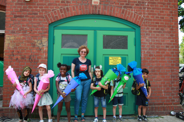 Zum vierten Mal waren wir bei der Einschulungsfeier in Jona’s Haus in Berlin dabei: 20 ergobag-Ranzen wurden an stolze Erstklässler übergeben. Unterstützt haben uns Steven Janz und Nathalie Boensch vom IVD Sozial.