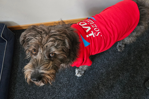 Beim IVD Berlin-Brandenburg war er lange im Einsatz, jetzt macht er sich schick für seinen nächsten Auftrag: Bürohund Peanuts hat bereits erfolgreich Spenden für das Projekt Lesehunde gesammelt. Damit konnten Kinder mit Leseschwierigkeiten neues Selbstvertrauen gewinnen.