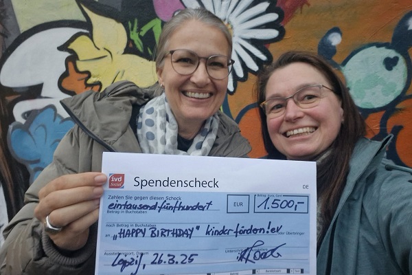 Anja Roocke übergab in Leipzig 1.500 Euro an den Verein Kinder fördern! e.V.. Das Projekt „HAPPY BIRTHDAY“ ermöglicht Kindern von Alleinerziehenden Geburtstagsfeiern mit Freund*innen – für mehr Teilhabe, Selbstwert und soziale Bindung.
