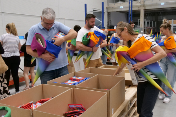 Zum vierten Mal waren wir bei der Einschulungsfeier in Jona’s Haus in Berlin dabei: 20 ergobag-Ranzen wurden an stolze Erstklässler übergeben. Unterstützt haben uns Steven Janz und Nathalie Boensch vom IVD Sozial.