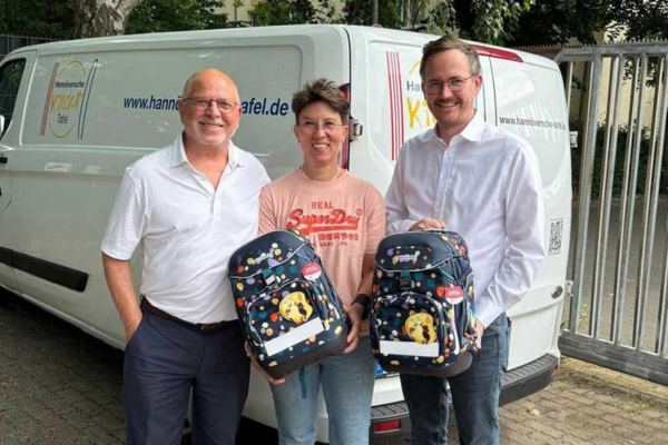 Unsere Regionalbotschafter Hans-Jürgen Simchen und Jan Wilhelm Kunze übergaben im Rahmen der Aktion „Ein Ranzen für Nele“ 20 gespendete Schulranzen an die hannöversche Tafel. Vielen Dank an alle Spender und Helfer!